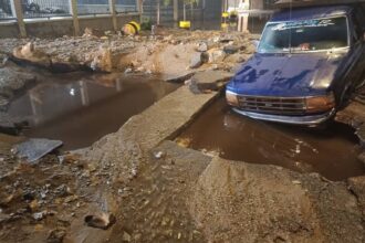 La rotura de una tubería matriz en el sector La Toma, municipio…