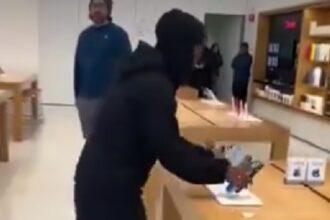 El video viral de un hombre que se robó casi 50 iPhones de una mesa de exhibición en una tienda Apple