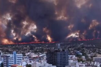 Las imágenes apocalípticas de voraz incendio que causa pánico en ciudad turística argentina