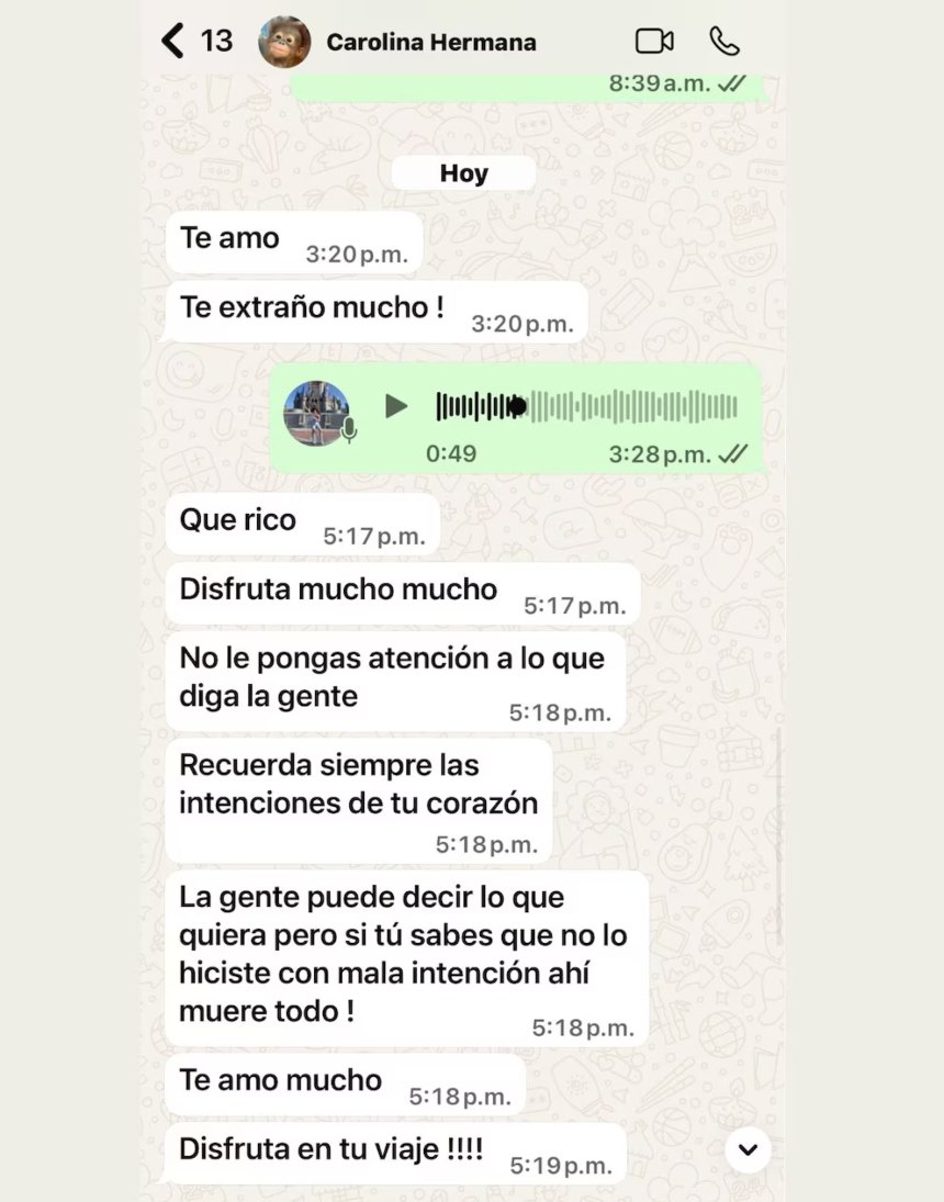 La respuesta de Karol G no tardó en llegar. A través de un mensaje privado que luego su hermana compartió públicamente, la artista le escribió: “No le pongas atención a lo que diga la gente, recuerda siempre las intenciones de tu corazón. La gente puede decir lo que quiera, pero si tú sabes que no lo hiciste con mala intención, ahí muere todo”.