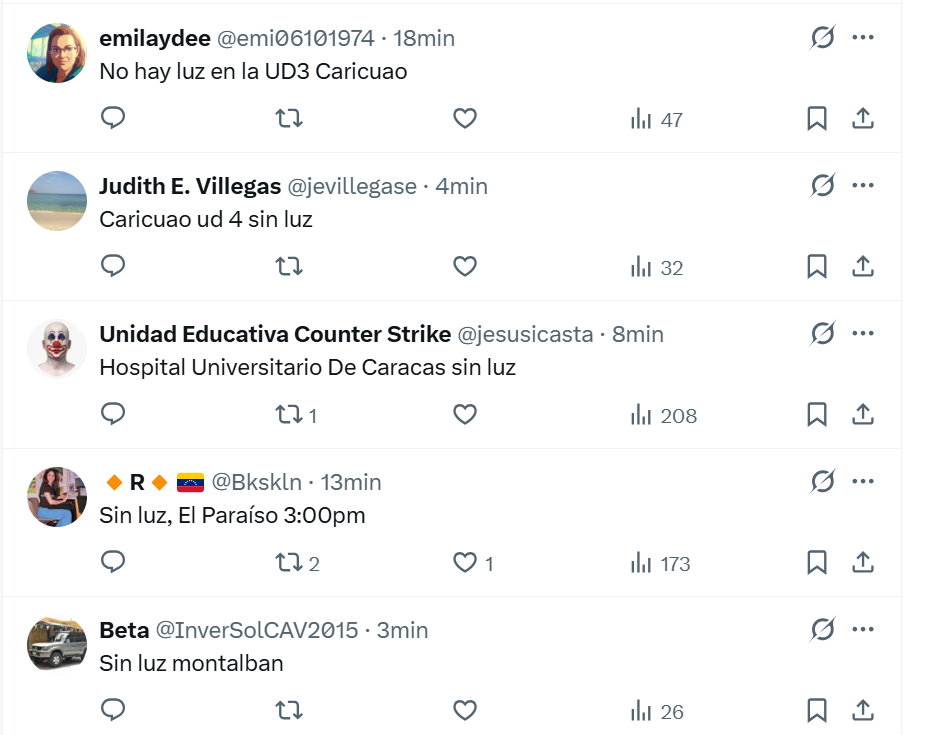 El bajón ocurrió a las 2:48 p.m. Según los reportes en X afectó Caracas, Miranda, Carabobo, Aragua, entre otros estados.