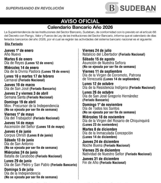 FERIADO BANCARIO EN VENEZUELA